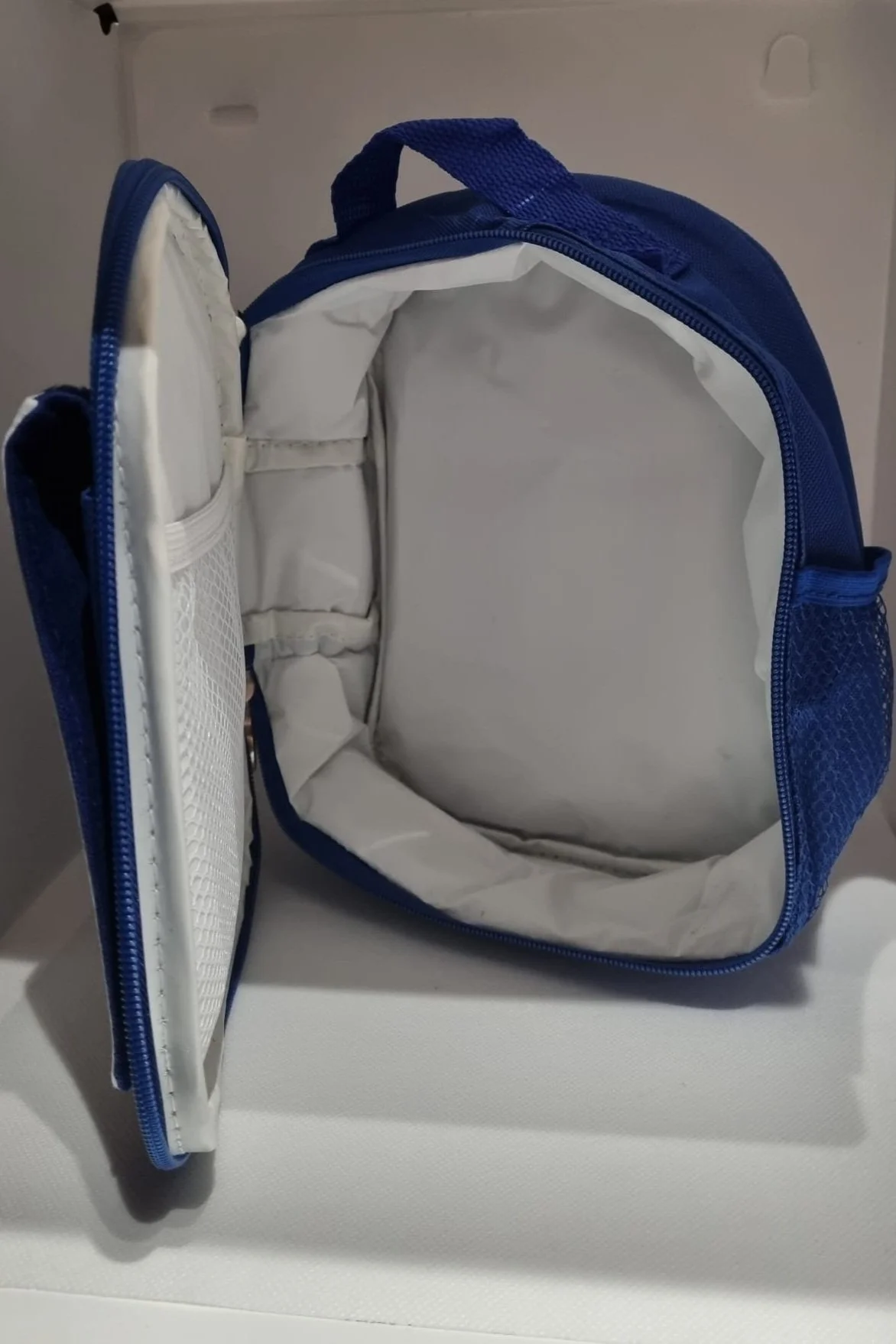 A canvas lunch bag with a waterproof inner which is easily cleaned. The bag contains a netted pocket and handle too. These are available in base colour of blue, pink, red or black.