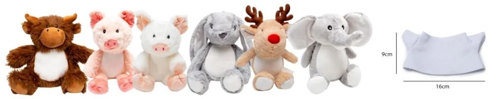 Other examples we have seen are wedding soft toys, christening presents, Christmas presents, birthday gifts, wedding favours and even gender reveals. There really is no limit and with the optional extra t shirts the fun can continue with different outfits.